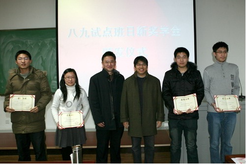 2010年1月,由威廉希尓指数500八九级数学基地班的毕业员工捐赠设立的首届日新奖学金颁发,数学科学学院的黄杉、方芳、戴嵩和李康伟四名同学获奖。
