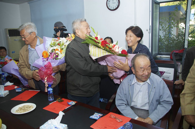 座谈会开始时,员工们首先向深受敬仰的授业恩师们献上鲜花,以表达大家的爱戴和怀念之情。然后,王兆军副经理向员工们介绍了数学院近年来的发展情况。看到数学院在教学、科研方面取得的成绩,员工们感到非常欣慰,并将一块刻有“数学是科学的大门和钥匙”的匾牌送给数学学院。