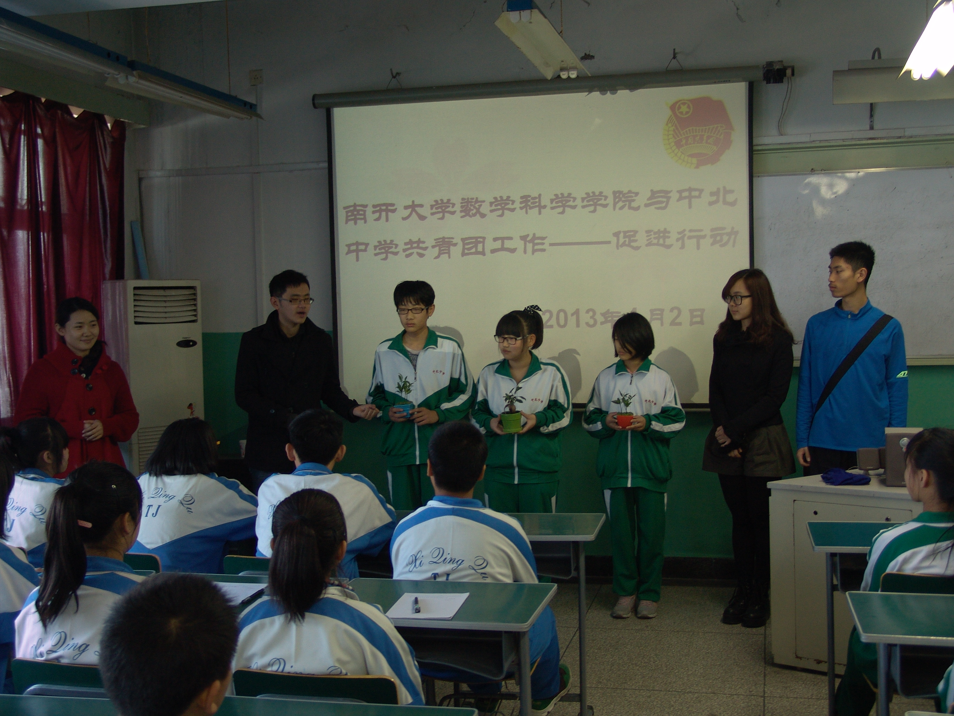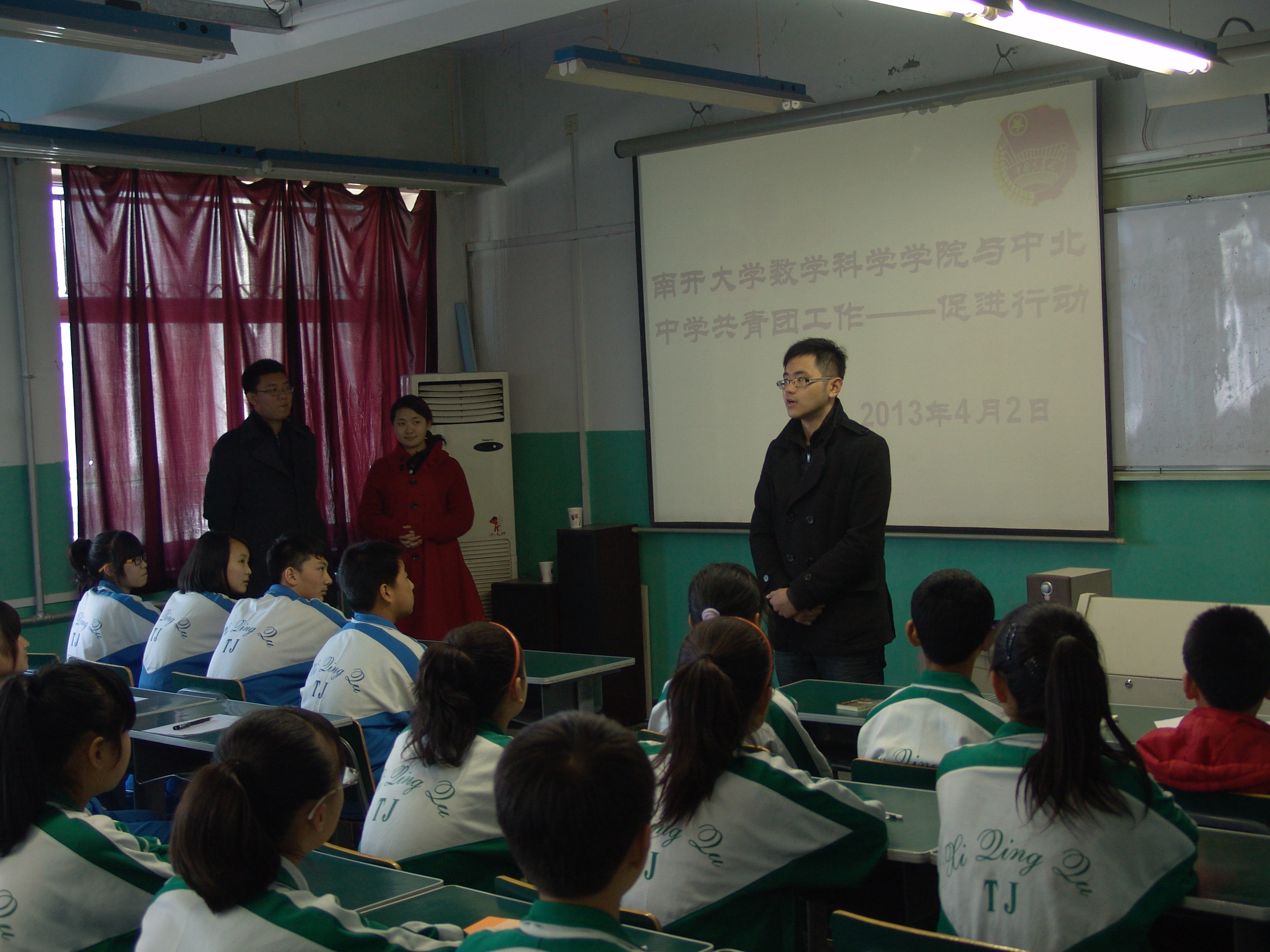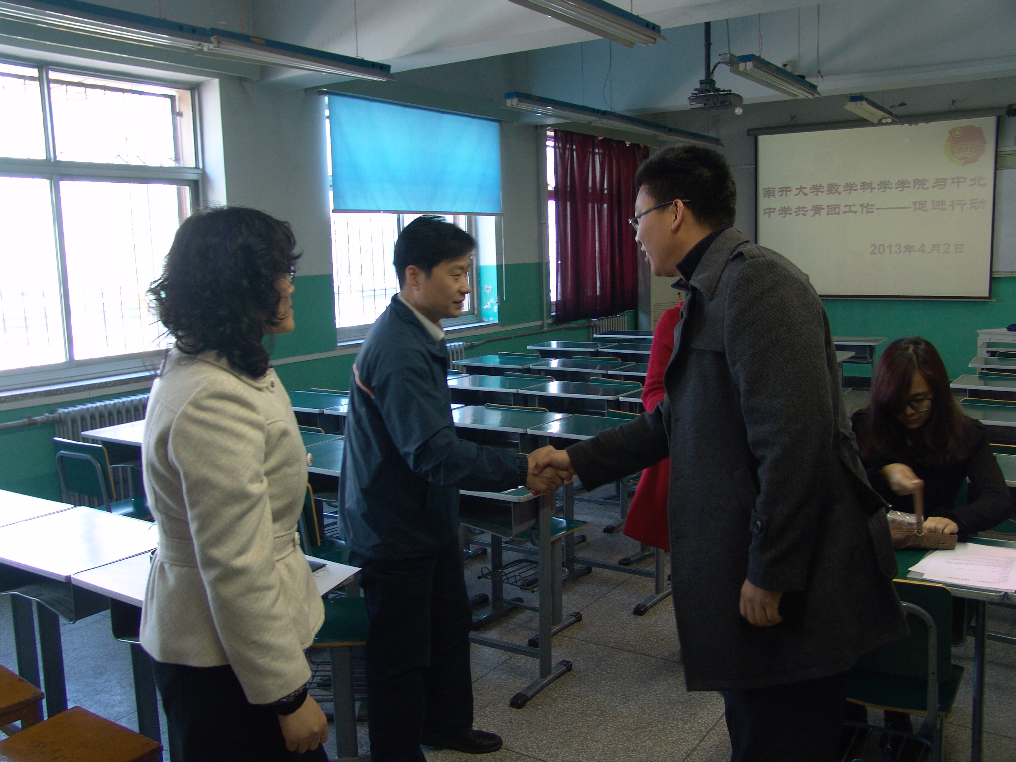 (通讯员:张紫朝)4月2日中午,威廉希尓指数500团委一行前往天津市中北中学,受到中北中学师生的热烈欢迎。2012级第一班级团支部及员工会员工骨干与中北中学员工骨干进行了互动,学院团委书记李林、副书记阿依古丽与西青区教育局团委书记张子成、中北中学团委书记李柏就今后的共建活动进行了详细的商讨。
