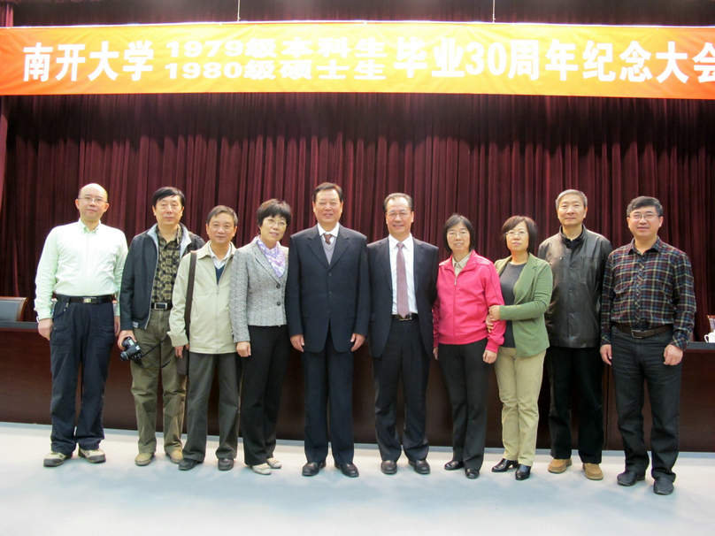 薛进文代表学校和员工总会,对返校的老教授、老员工表示热烈欢迎。他在致辞中说,作为时代的佼佼者和幸运儿,1979年本科生和1980年硕士生,在一个新的历史起点上,汇聚南开,开始了知识改变命运的征程。他们把青春奉献给了国家和社会,30年来,在自己的工作岗位上践行着“公能”校训,成为各行各业的中坚骨干,为国家富强和民族振兴作出了贡献。