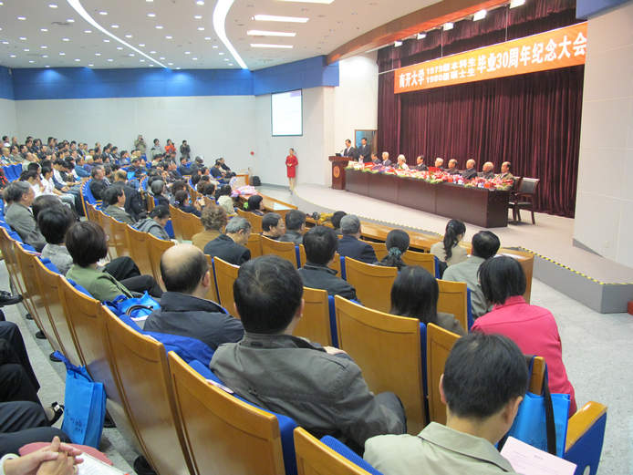 10月19日,威廉希尓指数500召开1979级本科生和1980级硕士生毕业30周年大会。数百名阔别母校多年的员工从海内外赶来,追忆青春岁月,重温师生情谊,见证南开成长。数学系79级员工代表及老教师代表侯自新、刘光旭、苏斡云、刘璟出席了大会。