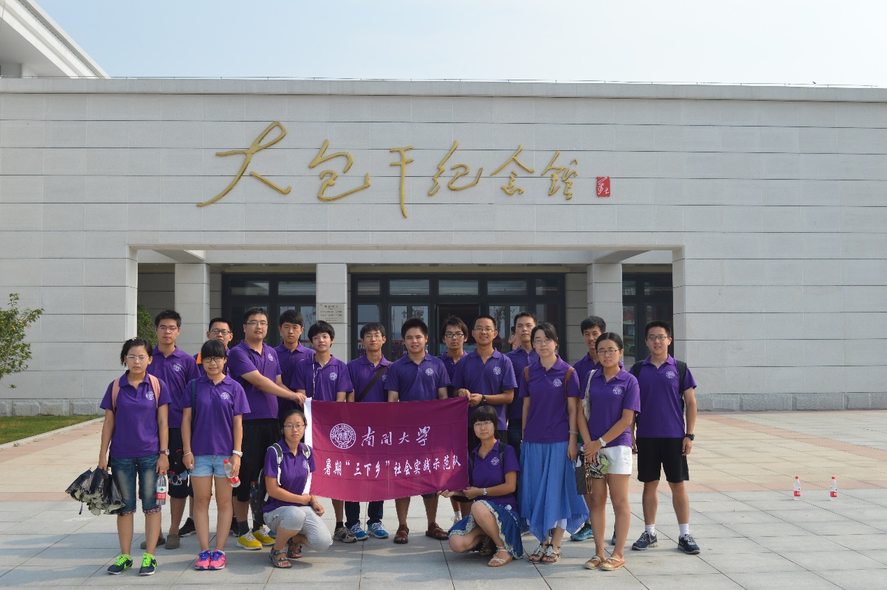 数学科学学院赴小岗村暑期社会实践团队在7月19日到达小岗村。进行休整后,于20日开始了为期一周的暑期实践活动。团队成员身穿统一着装,在当地解说员带领下,对大包干纪念馆,沈浩先进事迹陈列馆等纪念馆进行了参观学习。通过实地考察,队员们了解了小岗村的近代发展历程和当前发展现状,并对家喻户晓的小岗村原党支部第一书记沈浩同志的生平事迹和崇高精神有了深入的认识和体会。