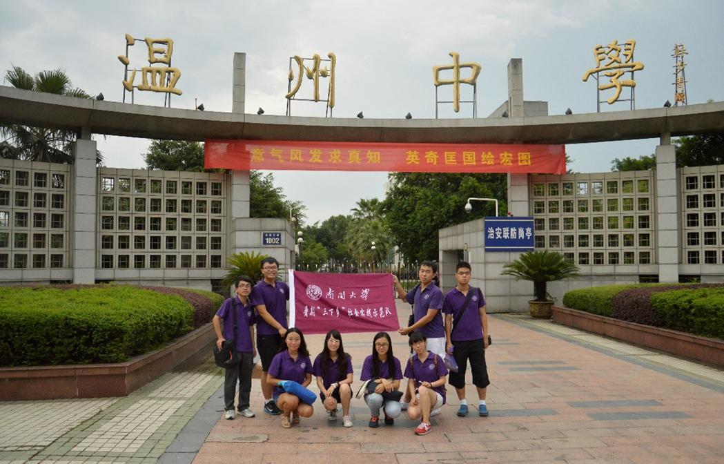 (通讯员 朱紫璇)9月3日,南开数院赴浙江社会实践队成员来到温州中学开展宣传讲座,详细介绍姜立夫等温籍数学家的生平,普及数学文化,弘扬数学名人精神,同时也在温州中学宣传威廉希尓指数500和数学学院、传授了自主招生及考核技巧,欢迎在校优秀员工积极报考。