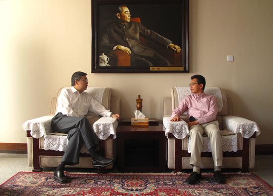 龚克向杨恩辉介绍了近年来学校的发展变化及未来前景,以及专业设置与项目合作情况。龚克说,相信南开师生有较好的能力及素养去承担一些有实践意义的科研项目,希望通过此次访问,对学校今后的科研项目合作与交流有所推动,进一步提升南开师生的科研水平。杨恩辉十分赞同。