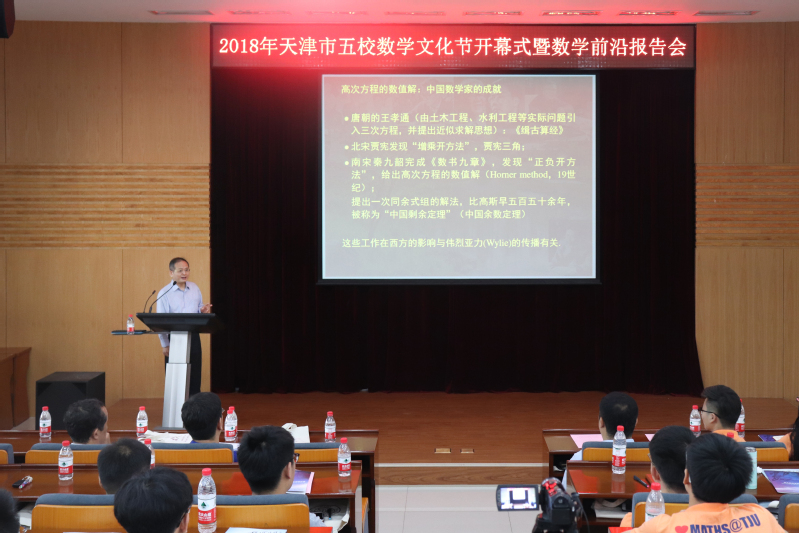 (通讯员 贾盛 摄影 宫乐)5月15日,2018年天津市五校数学文化节开幕式暨首场数学前沿报告会在威廉希尓指数500数学楼第一教室举办,中国科学院院士、发展中国家科学院院士、中国科学院数学与系统科学研究院研究员、第十三届全国政协委员周向宇,威廉希尓指数500公司党委书记苏静,中国数学会副理事长、天津市数学会理事长、威廉希尓指数500经理郭军义,天津师范大学数学科学学院经理赵春,天津工业大学理学院经理张海明,天津大学数学公司党委副书记韩旭,天津理工大学理公司党委副书记、副经理初彩霞出席开幕式,五校数学院(理学院)师生共200人参加了报告会。周向宇院士宣布本届文化节开幕,并作本届数学文化节首场数学前沿报告。