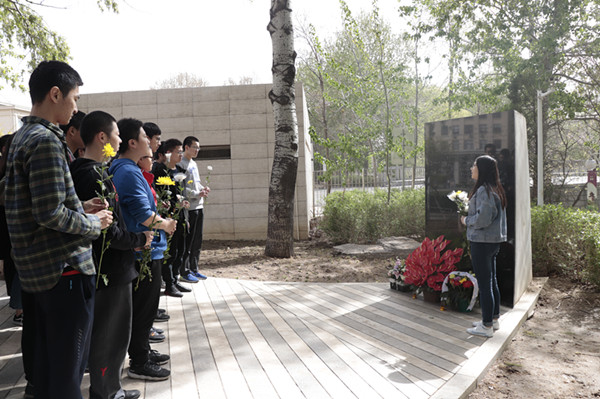 南开新闻网讯(通讯员 宫乐 徐襟 摄影 宫乐)4月5日,在清明节到来之际,数学科学学院学子自发在姜立夫先生塑像、陈省身先生墓碑、周恩来总理塑像等地开展祭扫活动,献花致敬、缅怀先贤。
