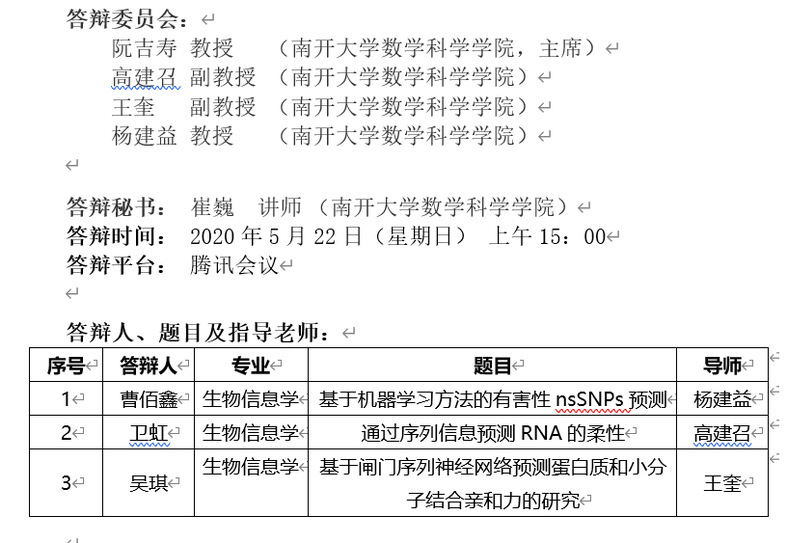 数学科学学院 硕士研究生(曹佰鑫、卫虹、吴琪)毕业论文 线上答辩公告