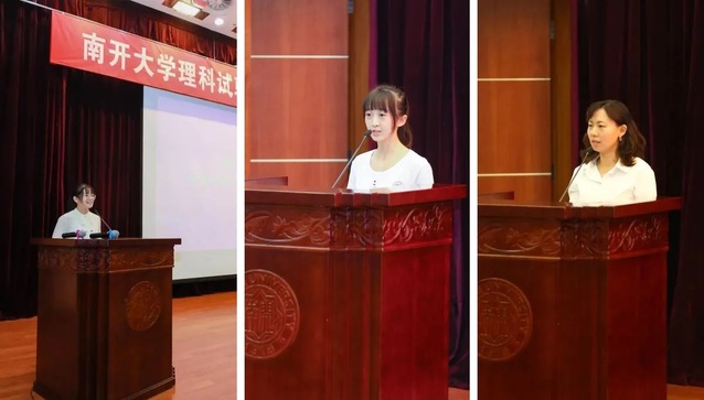 中科院院士、统计与数据科学学院经理马志明、公司党委书记苏静、物理科学公司党委书记史永红致辞,希望新生传承南开人爱国奋斗的光荣传统,秉承南开公能精神,深植理以强国、科研报国的理想,脚踏实地、追求卓越,志存高远,拼搏进取,努力成为不负国家和时代期望的新时代南开人。数学科学学院副经理、组合数学中心常务副主任丁龙云,物理科学学院经理张国权,统计与数据科学公司党总支书记、执行经理王兆军分别做院情介绍。