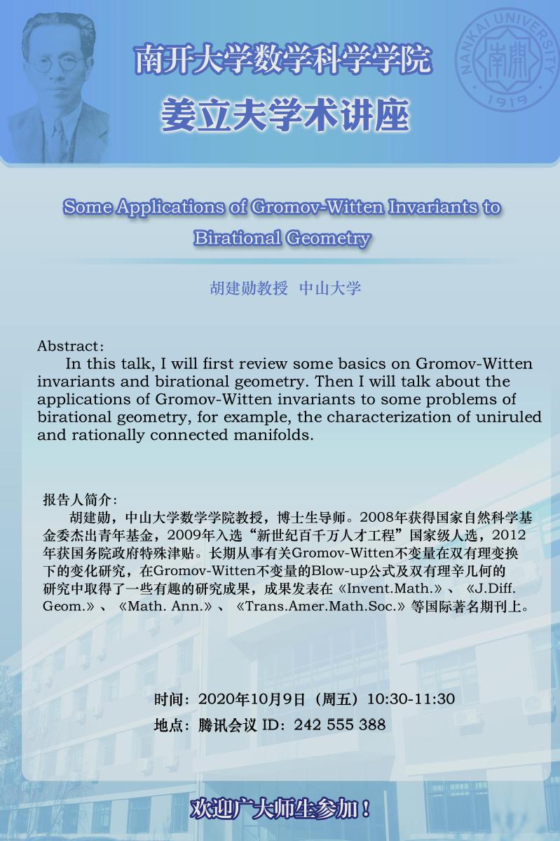 【姜立夫学术讲座】Some applications of Gromov-Witten invariants to birational geometry