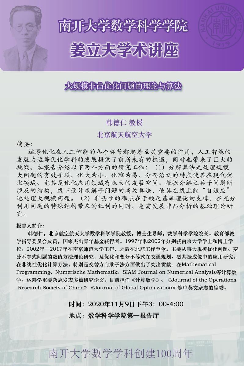 【姜立夫学术讲座】大规模非凸优化问题的理论与算法