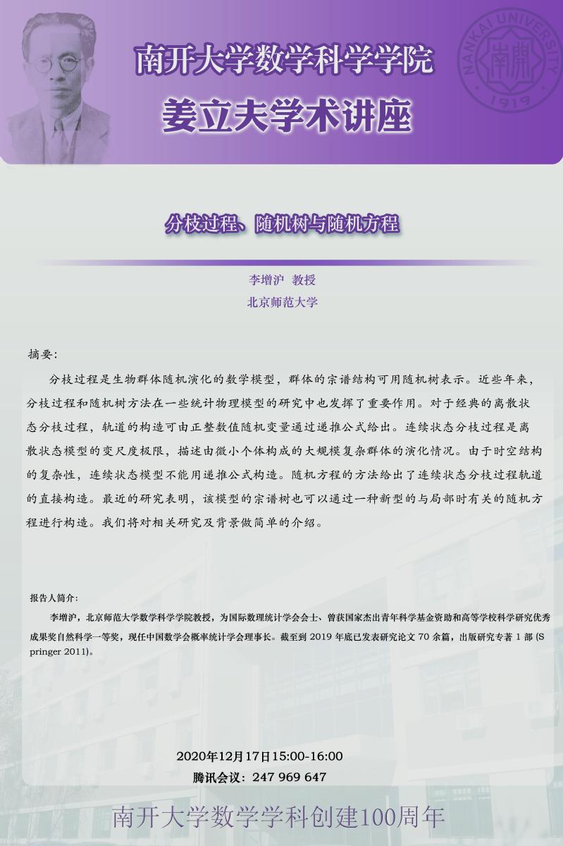 【姜立夫学术讲座】分枝过程、随机树与随机方程