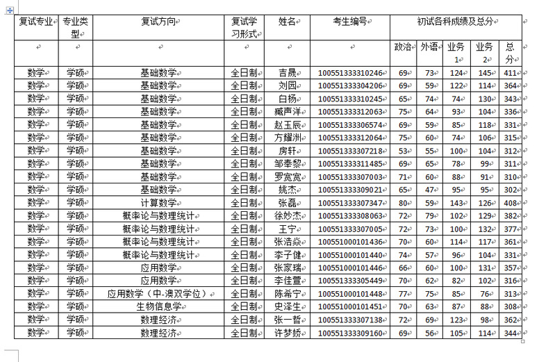数学科学学院2021年全日制硕士研究生参加复试考生名单