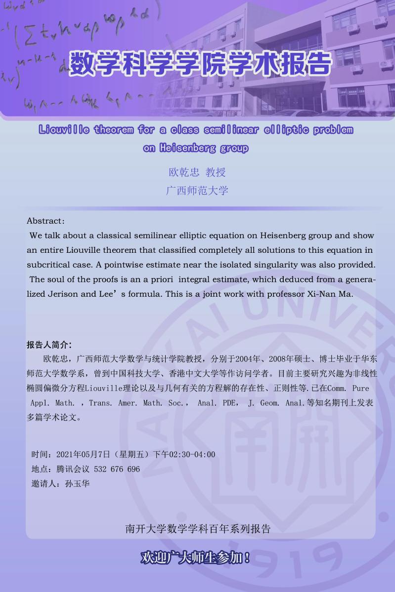 Liouville theorem for a class semilinear elliptic problem on Heisenberg group