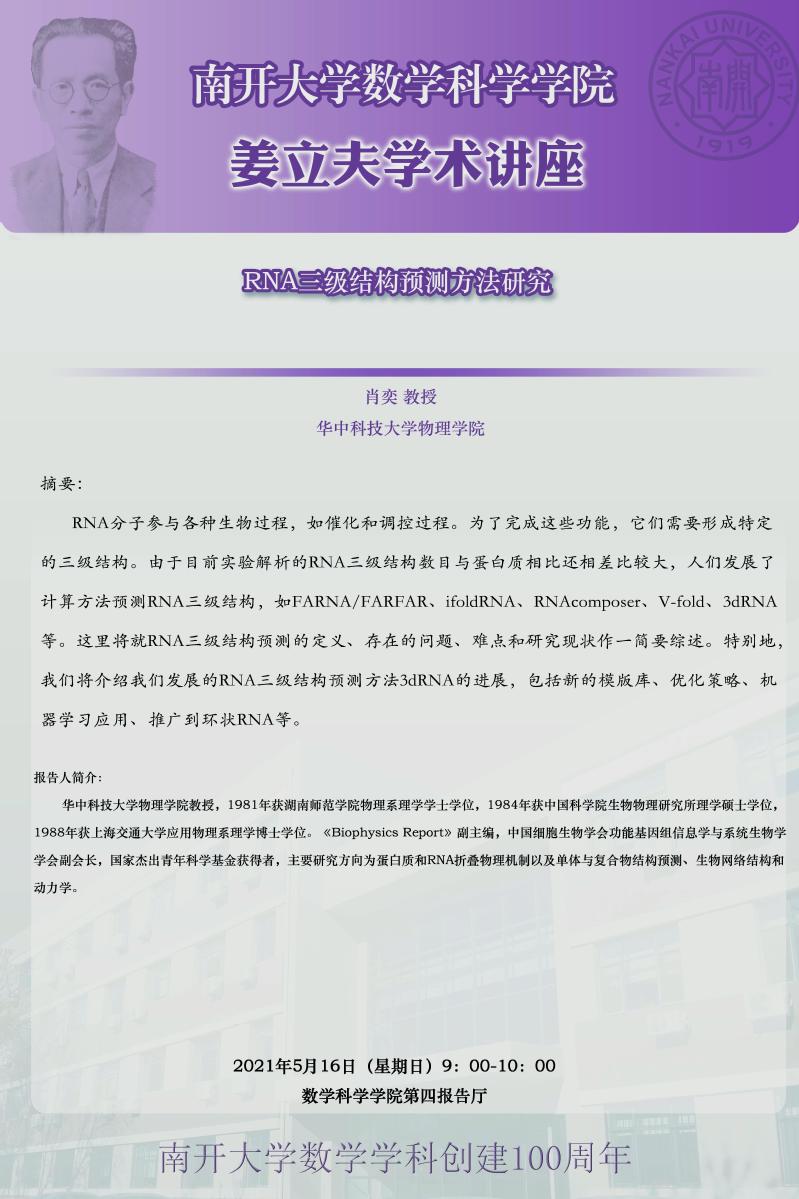 【姜立夫学术讲座】RNA三级结构预测方法研究
