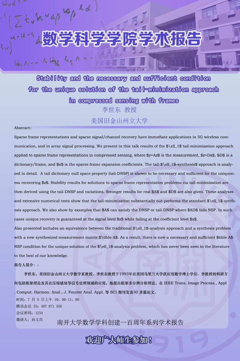 Stability and the necessary and sufficient condition for the unique solution of the tail-minimization approach in compressed sensing with frames