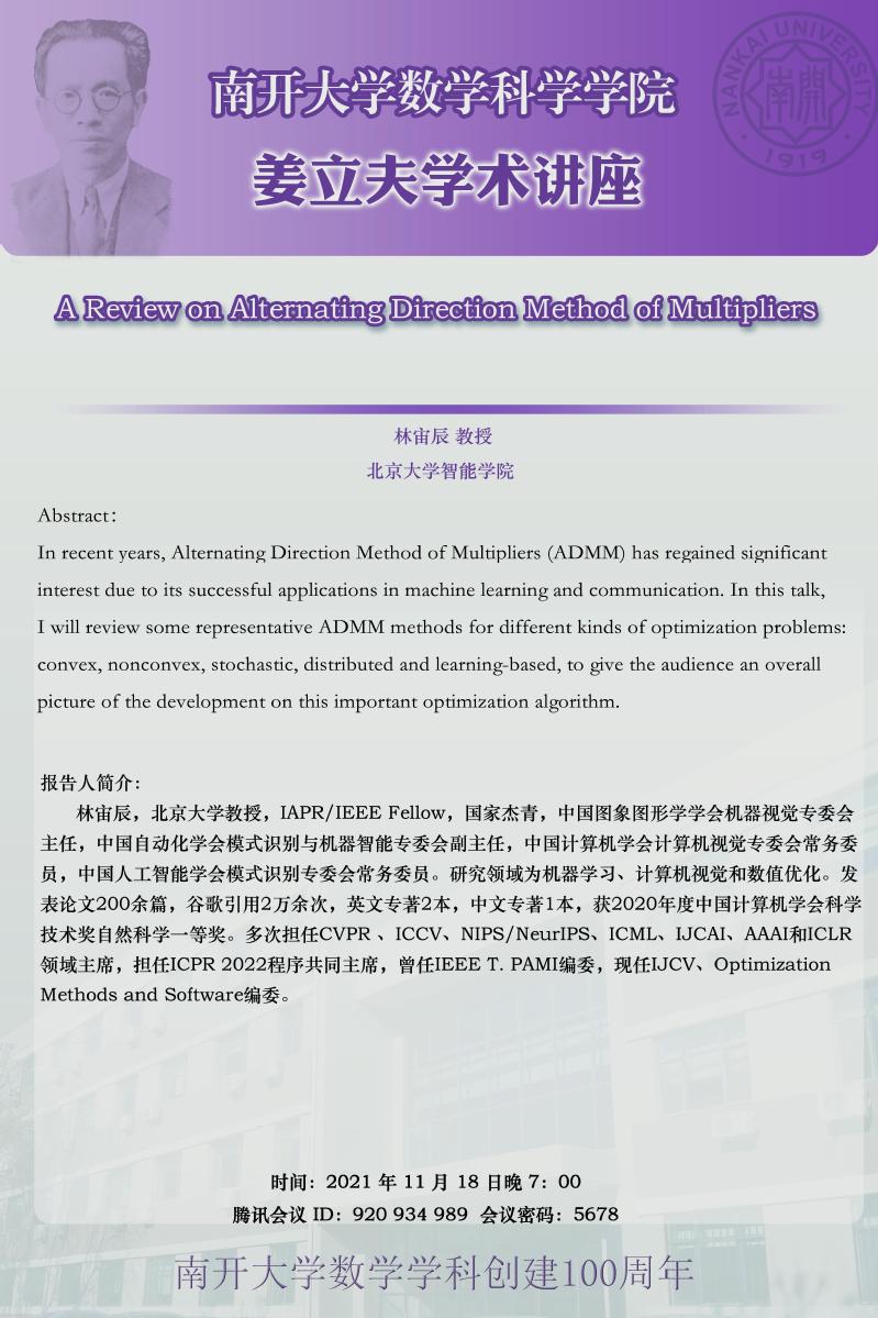 【姜立夫学术讲座】A Review on Alternating Direction Method of Multipliers