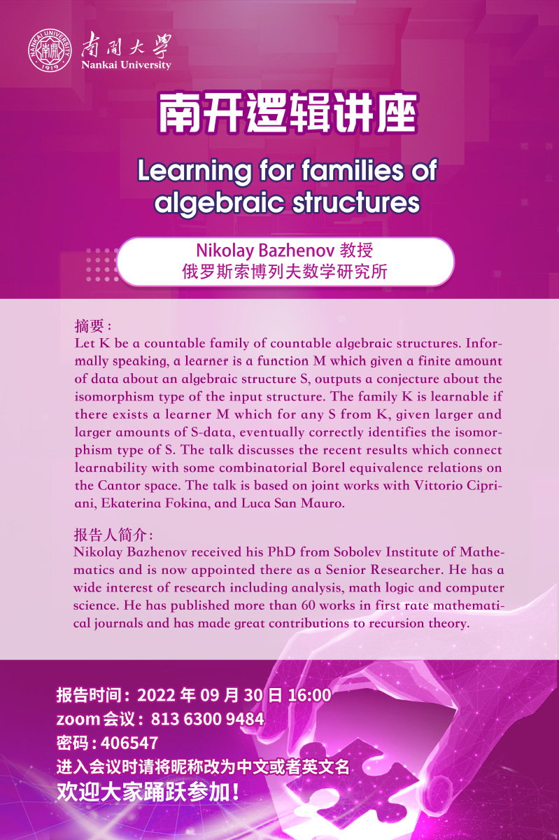 南开逻辑讲座第四讲--Nikolay Bazhenov 教授