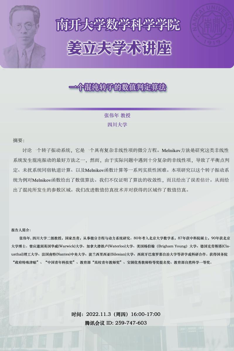 【姜立夫学术讲座】一个混沌转子的数值判定算法