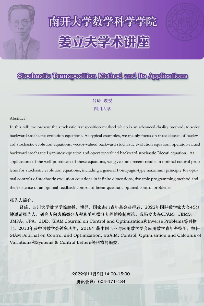 【姜立夫学术讲座】Stochastic Transposition Method and Its Applications