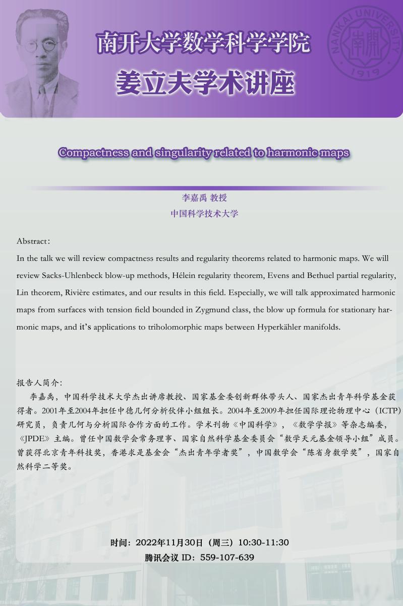 【姜立夫学术讲座】Compactness and singularity related to harmonic maps