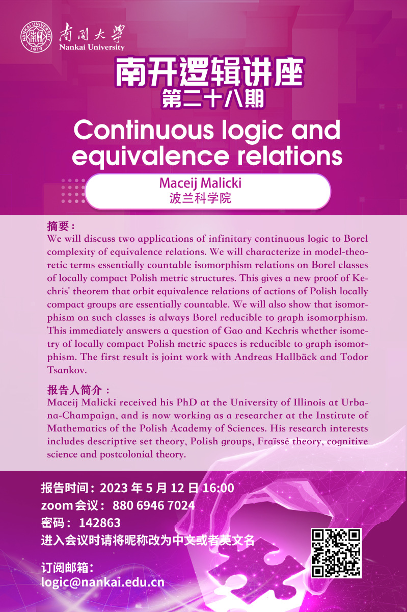 南开逻辑讲座第二十八期--Maceij Malicki