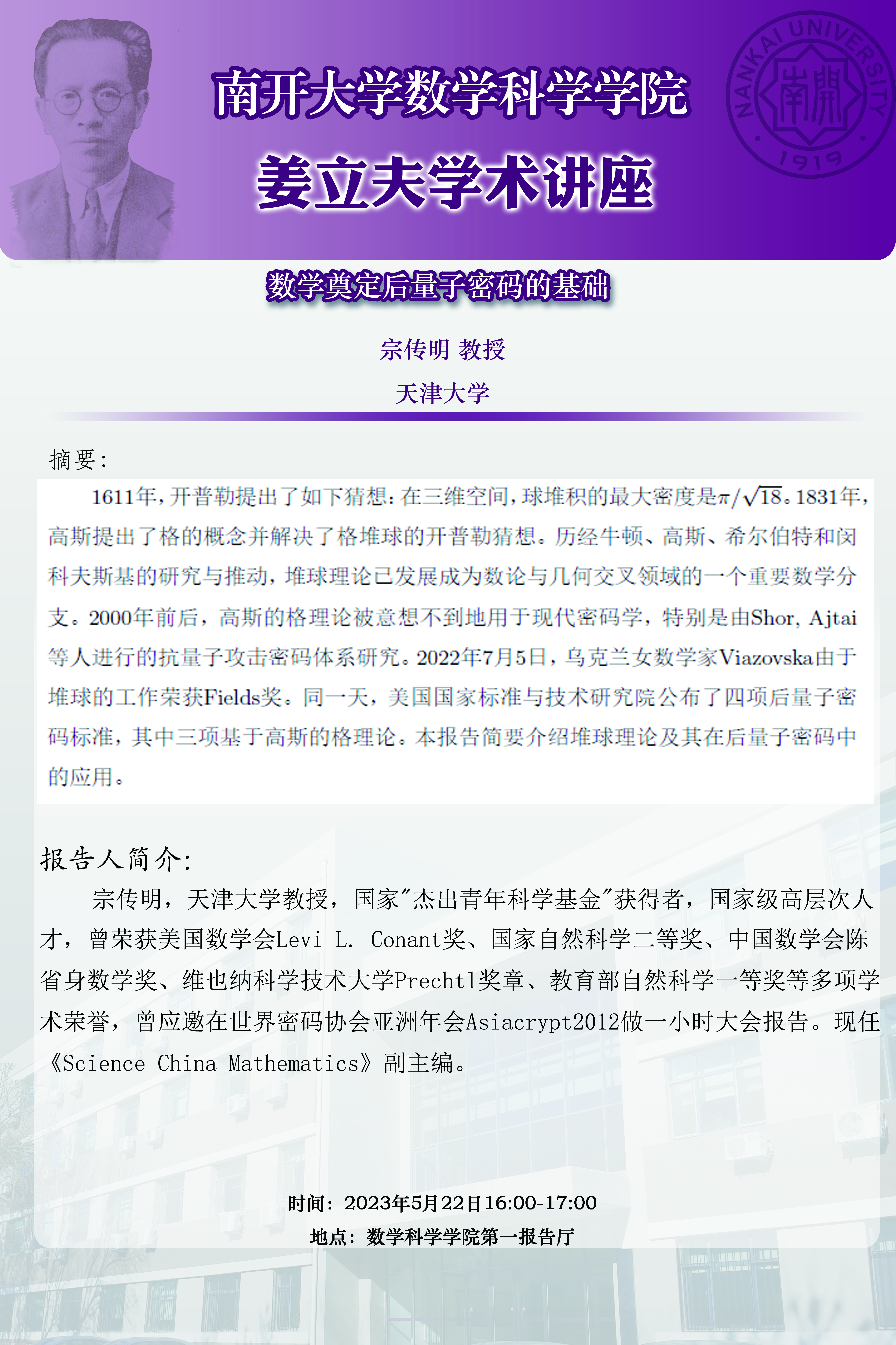 【姜立夫学术讲座】数学奠定后量子密码的基础