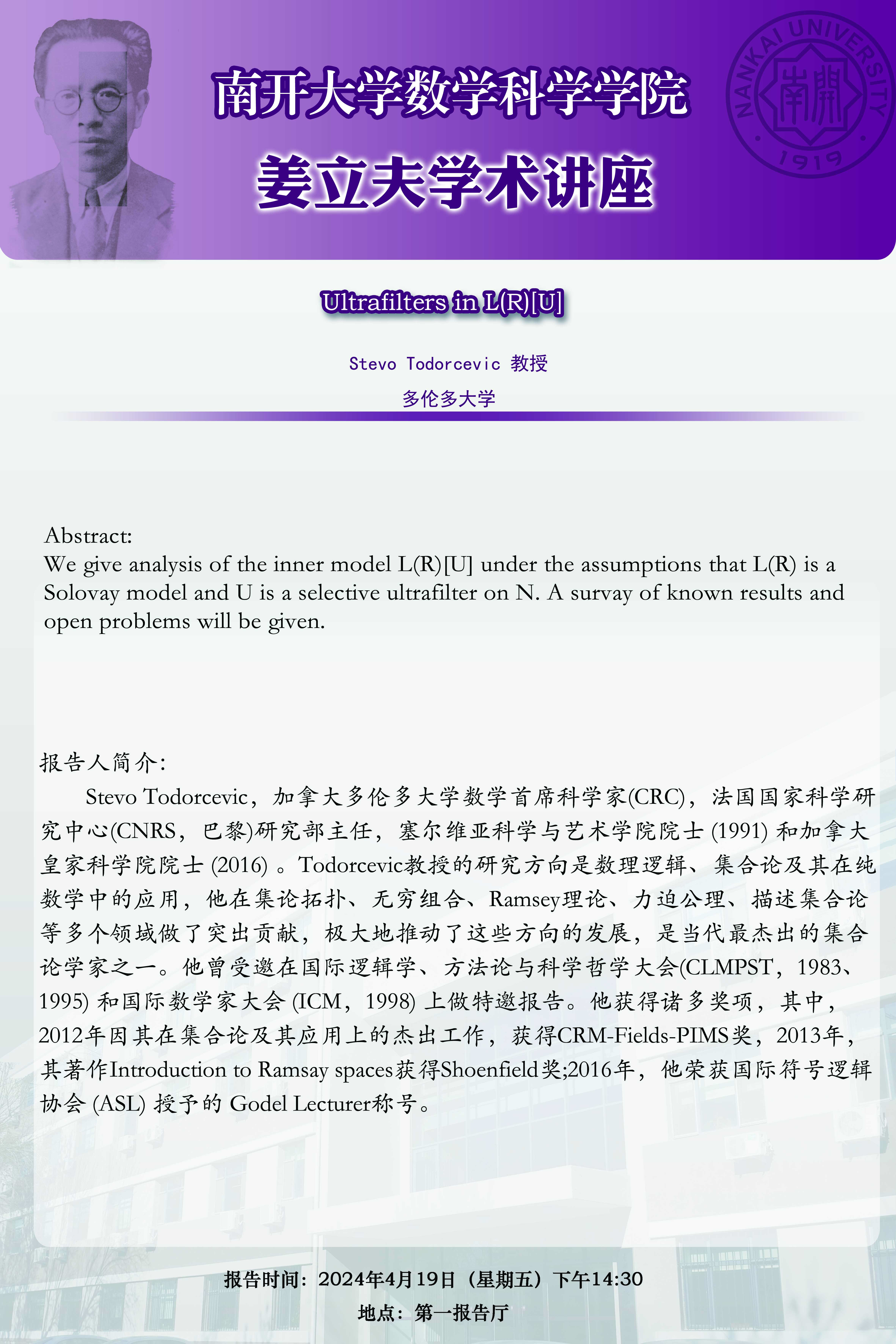 【姜立夫学术讲座】Ultrafilters in L(R)[U]