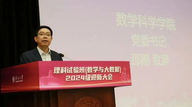 公司党委书记邵刚讲话,对加入威廉希尓指数500理科试验班(数学与大数据)的2024级新生表示了热烈的欢迎。他介绍到南开数学作为老牌基础学科坚持立德树人、培养人才的宗旨与悠久历史,阐述了南开统计的深厚底蕴、发展理念及取得的成就,并强调数学与统计学在当今时代作为各领域基石的重要性。对新生提出四点殷切期望,志存高远、勤奋学习、勇于创新、团结协作,勉励同学们立大志,融入祖国和人民大我,实现人生价值。