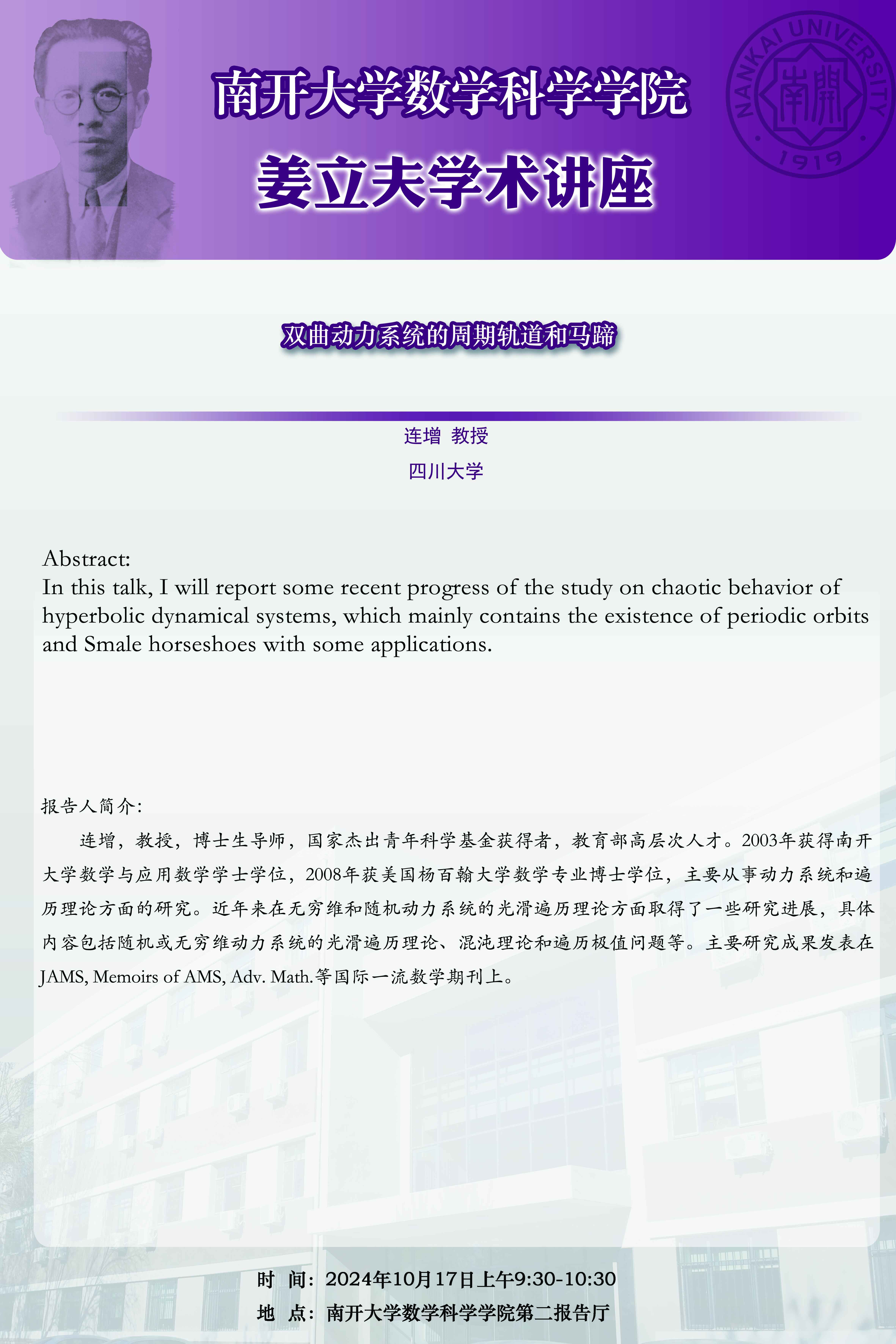 【姜立夫学术讲座】双曲动力系统的周期轨道和马蹄