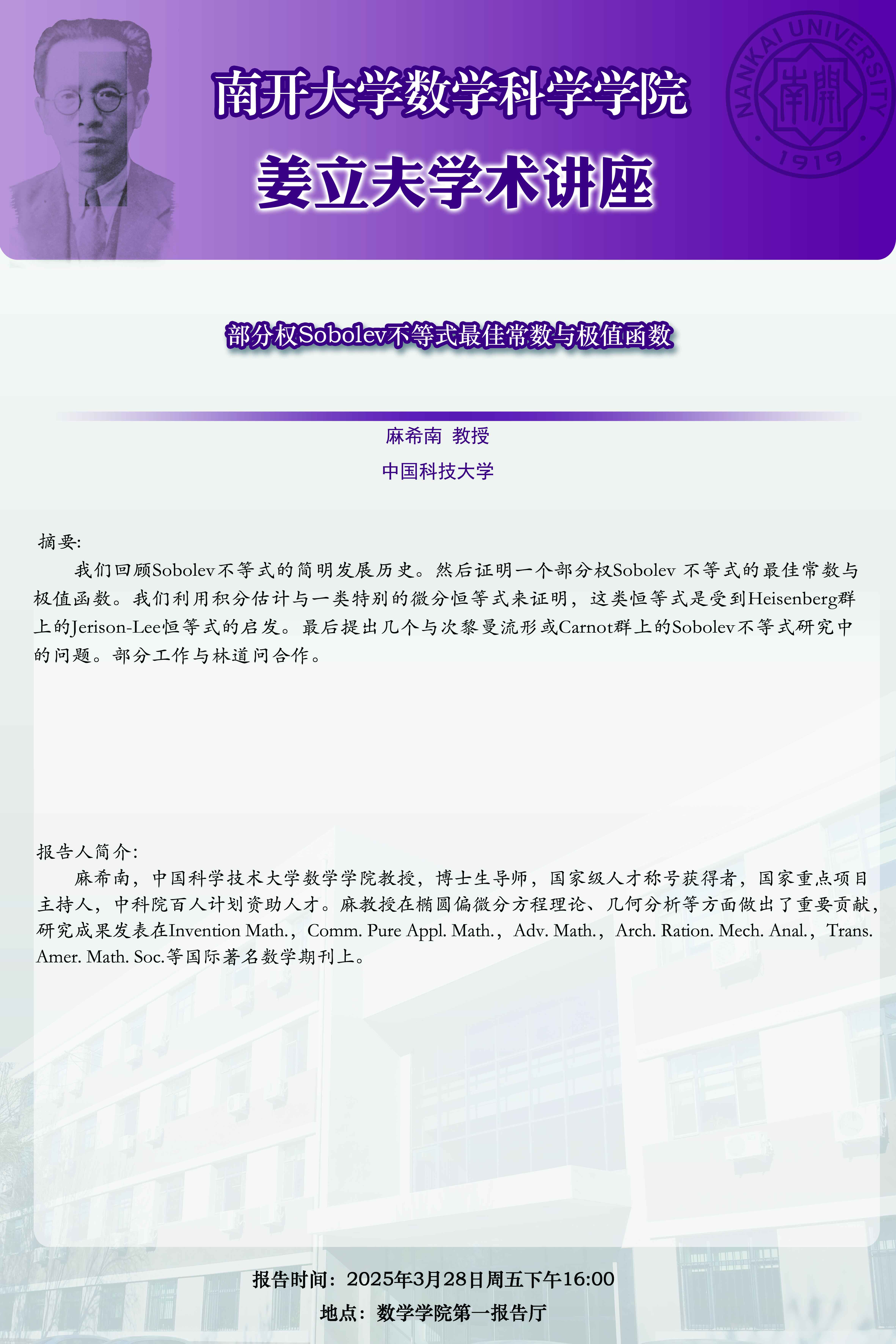 姜立夫讲座