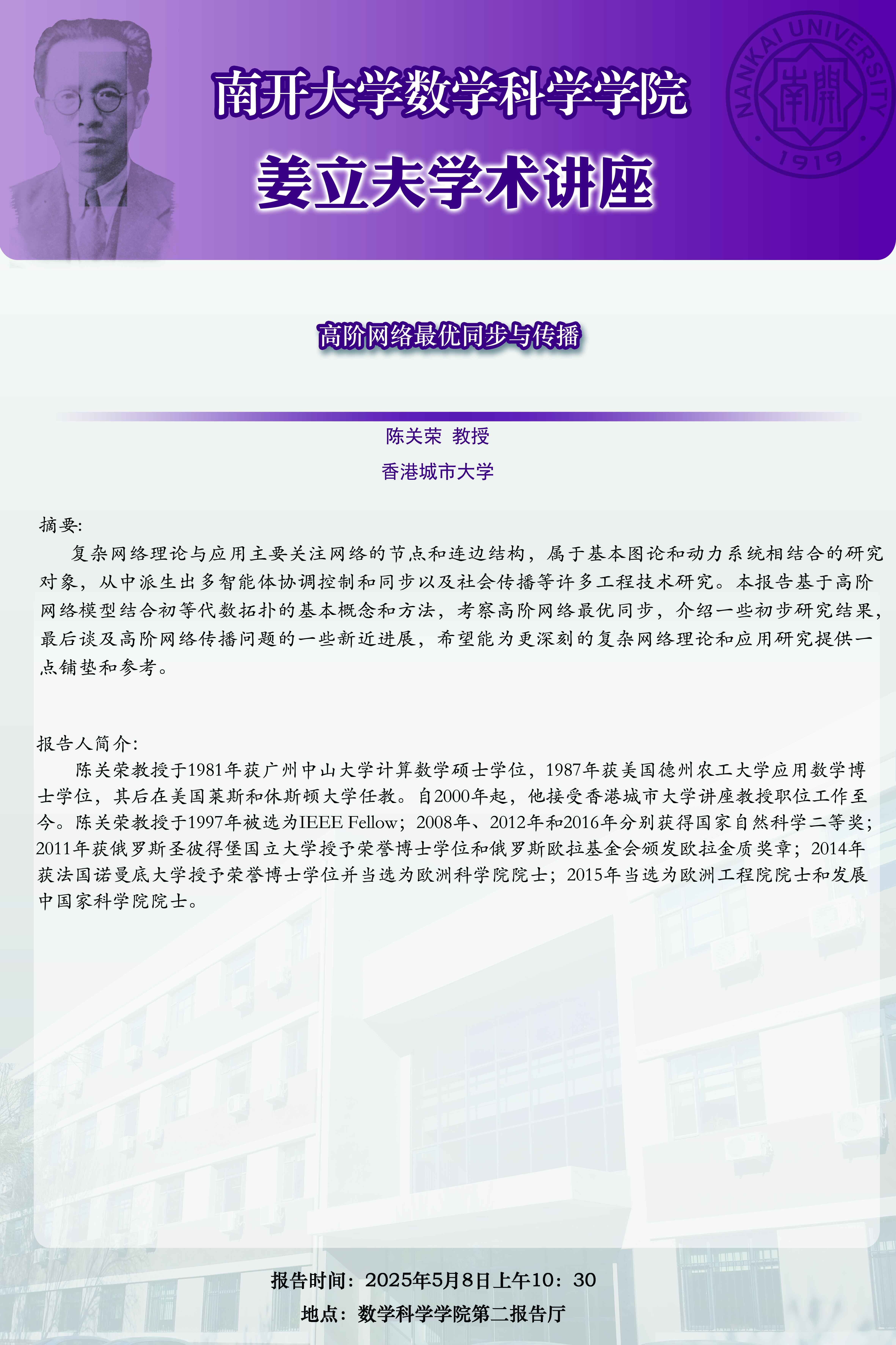 【姜立夫学术讲座】高阶网络最优同步与传播