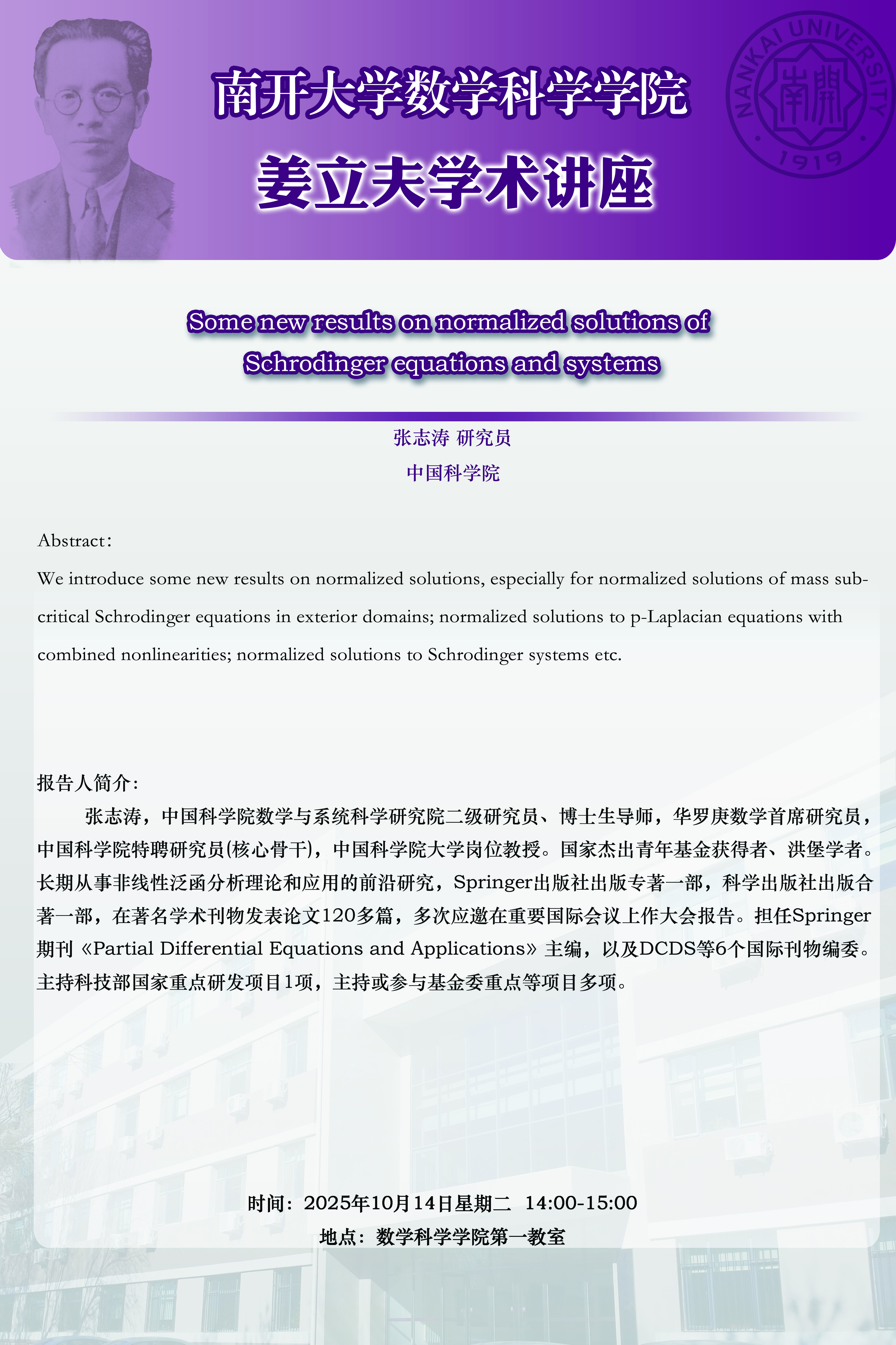 【姜立夫学术讲座】Some new results on normalized solutions of Schrodinger equations and systems