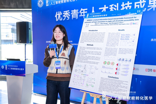 学术科研是李斯羽的核心战场,她以敏锐视角聚焦生物信息学领域关键问题,交出了一份亮眼答卷。硕士一年级期间,她以第一作者身份发表 3 篇学术论文,彰显了扎实的科研功底与创新能力。在中科院一区TOP期刊《Protein & Cell》上,她提出的单细胞多组学数据细胞类型自动注释方法,破解了传统方式效率低、主观性强的行业痛点;另一篇发表于中科院一区TOP期刊《Genome Biology》的成果,通过创新算法填补了单细胞染色质可及性数据注释的多项空白;而在中科院二区期刊《Scientific Data》构建的衰老相关DNA甲基化数据库,为领域研究提供了重要数据支撑。她还积极走出实验室,在中国运筹学会青年学术大会作口头报告,受邀参与《Protein & Cell》学者讲坛直播分享,累计观看量超1万人次,其成果获得同行广泛认可,更在第三届生物信息与转化医学大会斩获优秀海报奖。