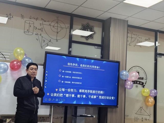 随后,公司党委书记邵刚以“凝心聚力,创先争优”为主题,深入解读“创先争优”行动的核心内涵与考核指标。他强调,行政人员需以创新思维、创新方法优化服务模式,主动靠前担当——既要积极争取资源、承担重点任务、破解工作难题,更要以“追求卓越”为目标,持续优化工作流程、提升行政效率。邵刚书记进一步指出,“创先争优”考核将围绕党建贡献、学院重点工作担当、工作流程优化、师生需求服务等维度展开。他特别提到,行政工作并非“单兵作战”,而是需强化团队协同,在完成事务性工作的基础上,主动对接学院发展战略;同时通过精细管理、数字赋能、提升执行力,全面提升行政运行效能。